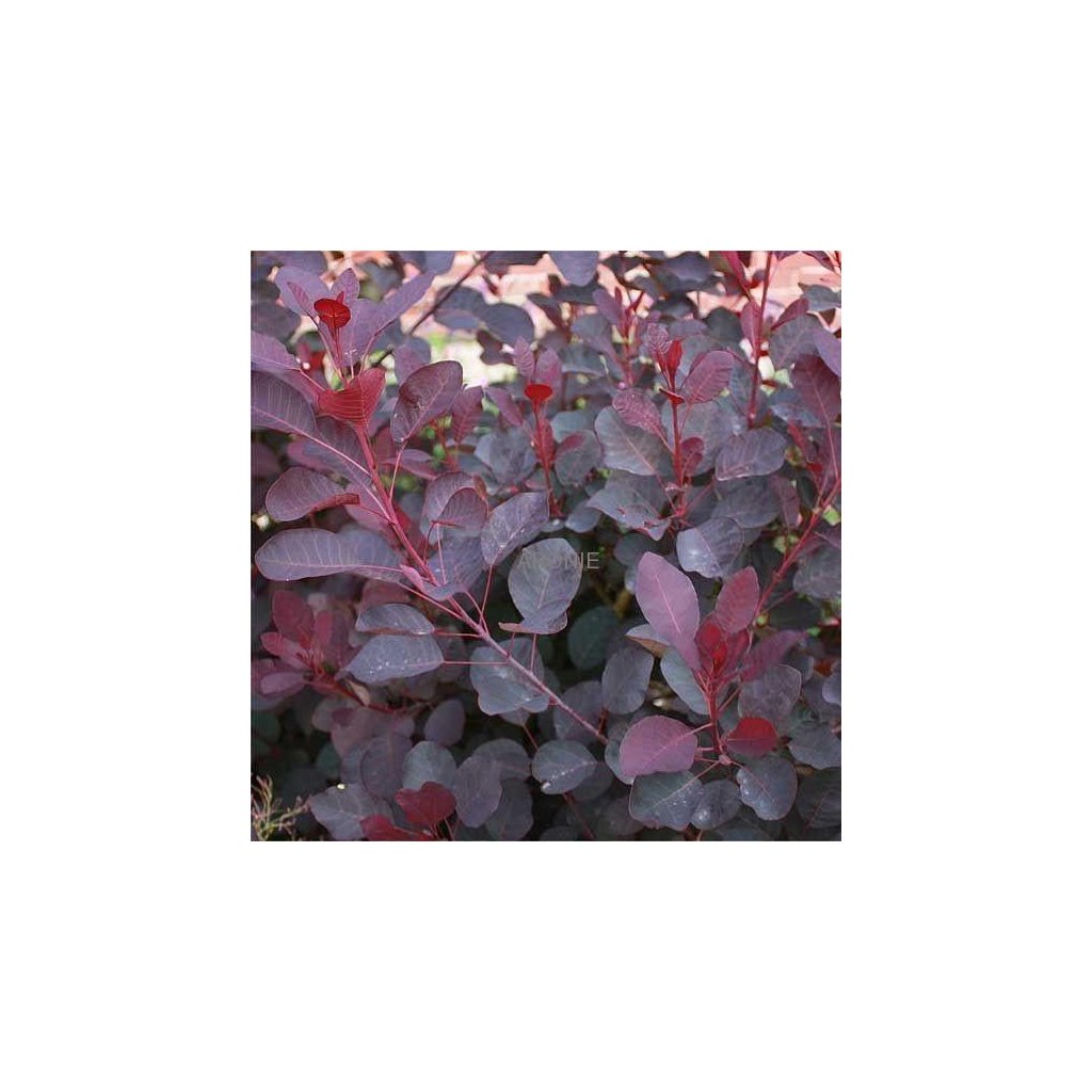 Květenství se podobá obláčkům kouře. Doba kvetení je od června do července. Je dobré ji zasadit proti slunci, tak lépe vyniknou její do vínova zbarvené listy.