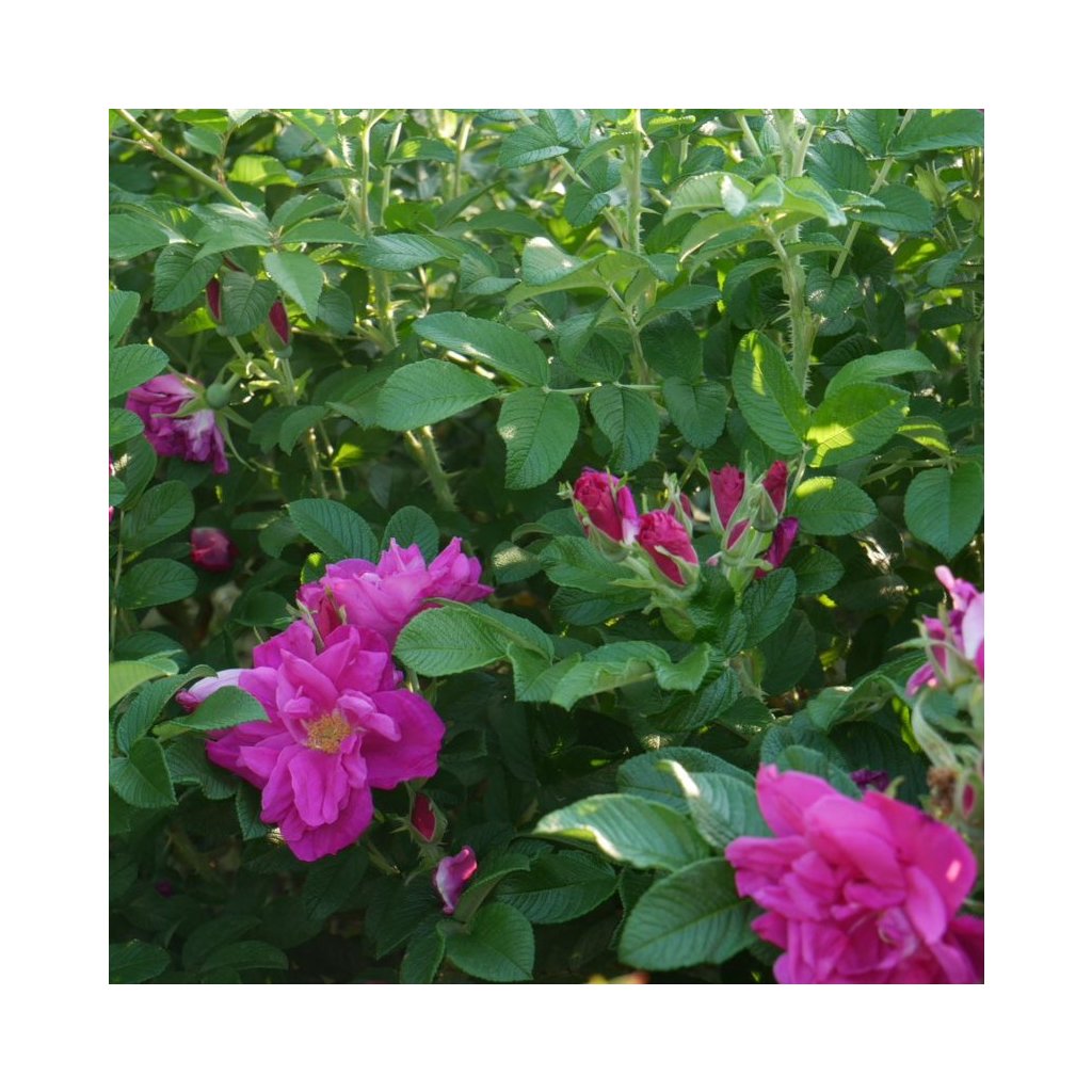 Růže svraskalé vytváří husté keře, které se sází nejen do venkovských zahrad, ale stále častěji i do zahrad moderních.