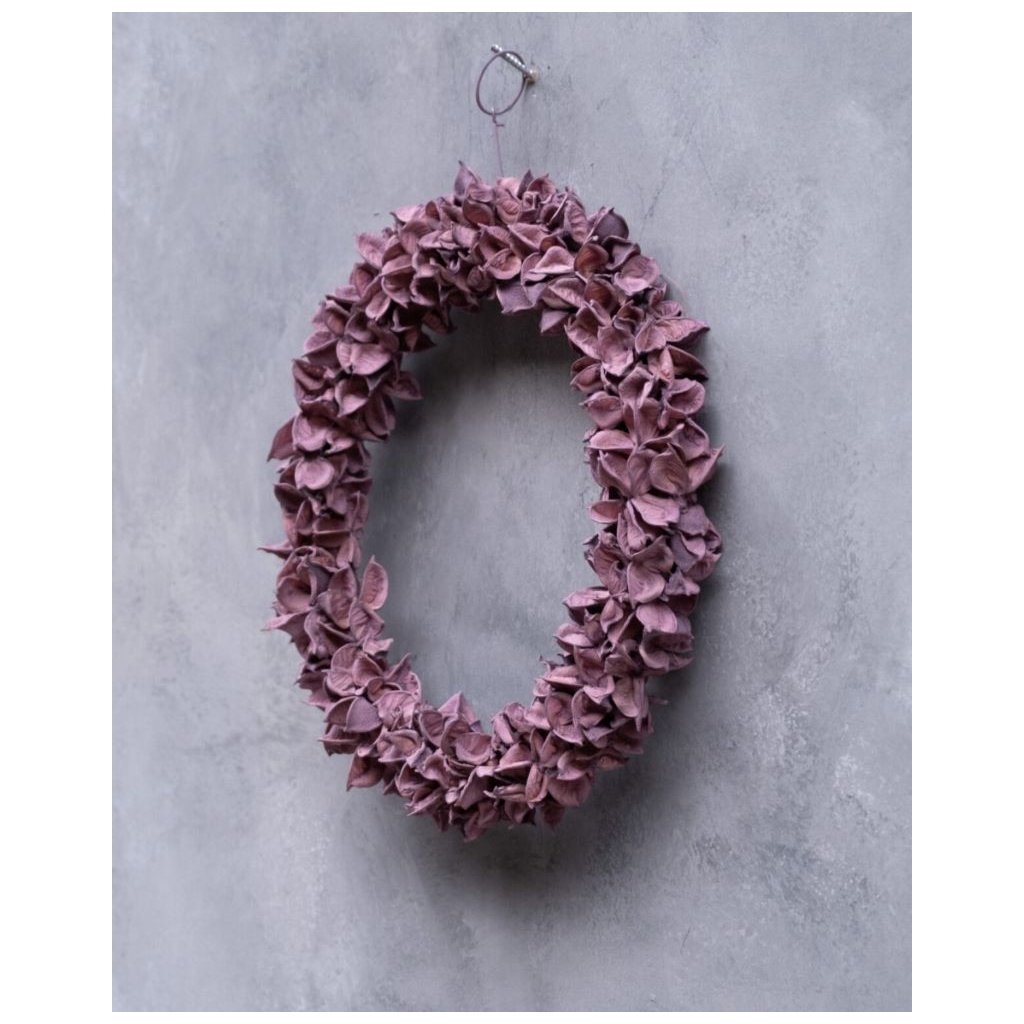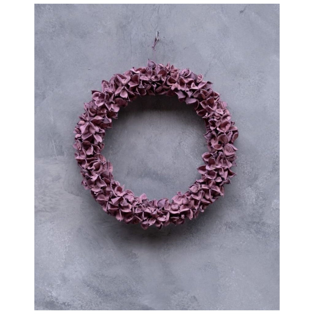 Věnec z lusků bavlníku v tmavě pudrové - Ø 30 cm Dekorace